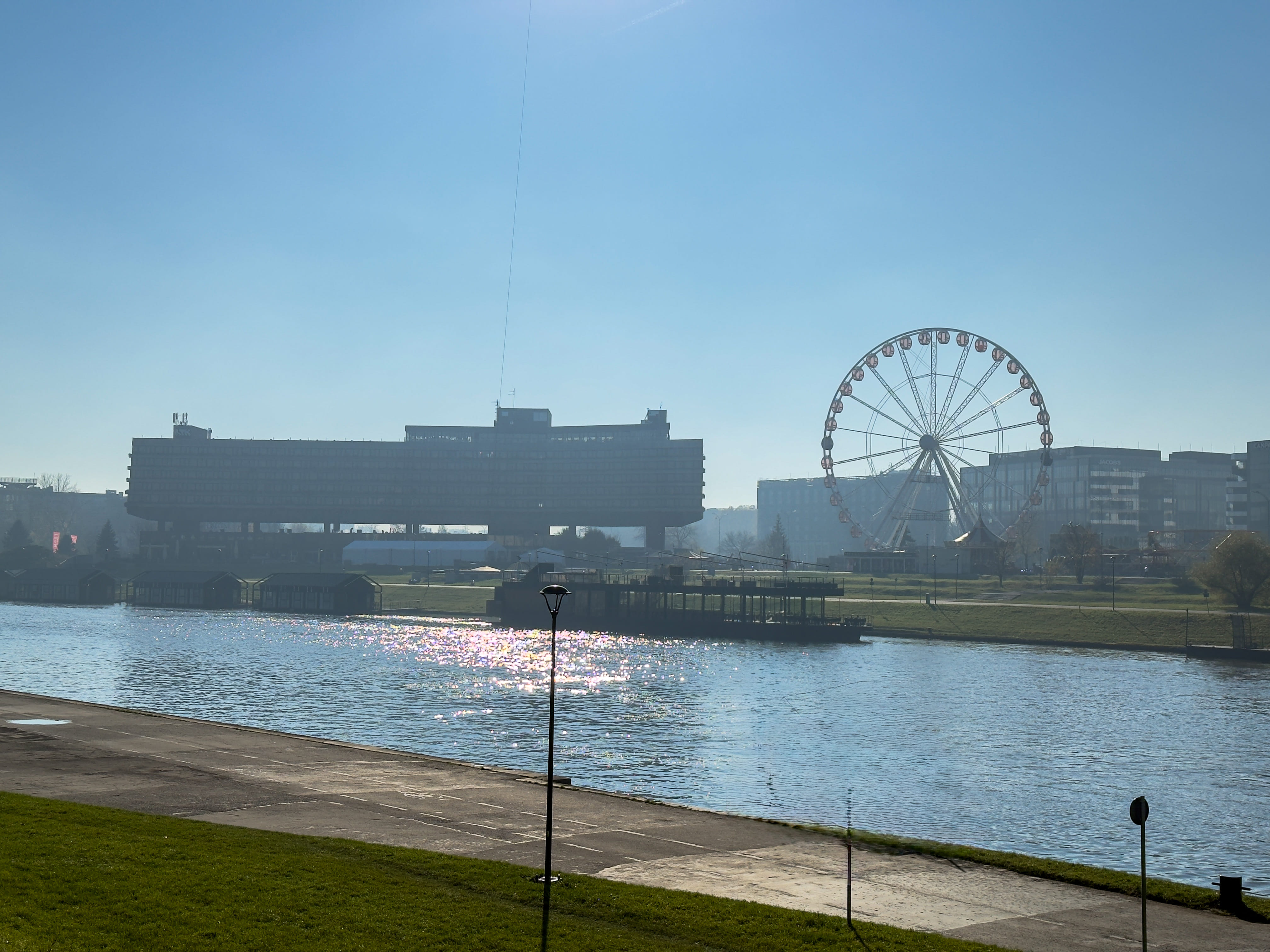 The original, modern form of the building housing the museum of art and technology is perfectly seen from the river level. The wavy line of its roof is to refer directly to the waves of the Vistula River